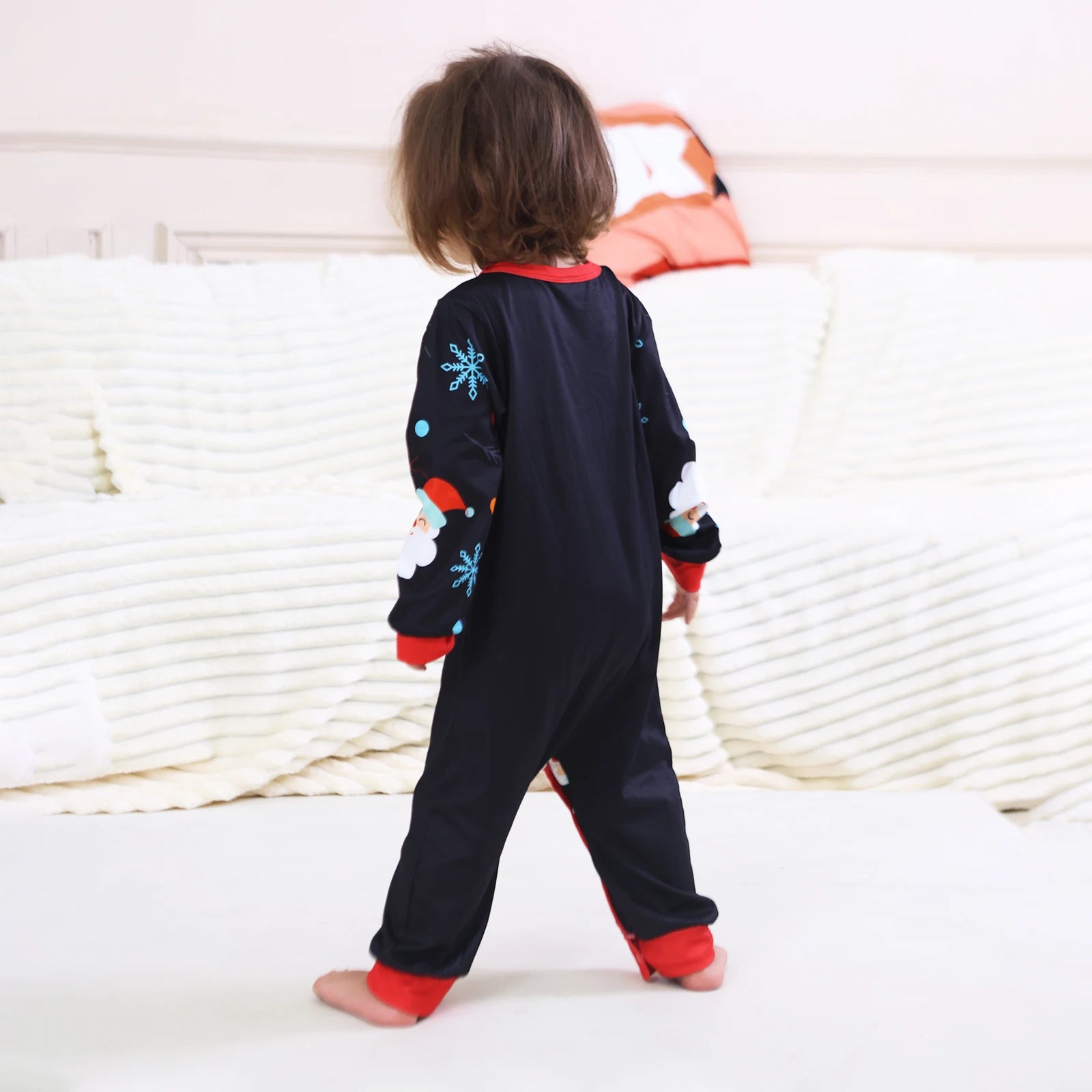. Santa Claus themed print — bold graphic of Santa (or coordinating holiday motifs) across tops or onesies, paired with matching bottoms or sets to create a cohesive look.