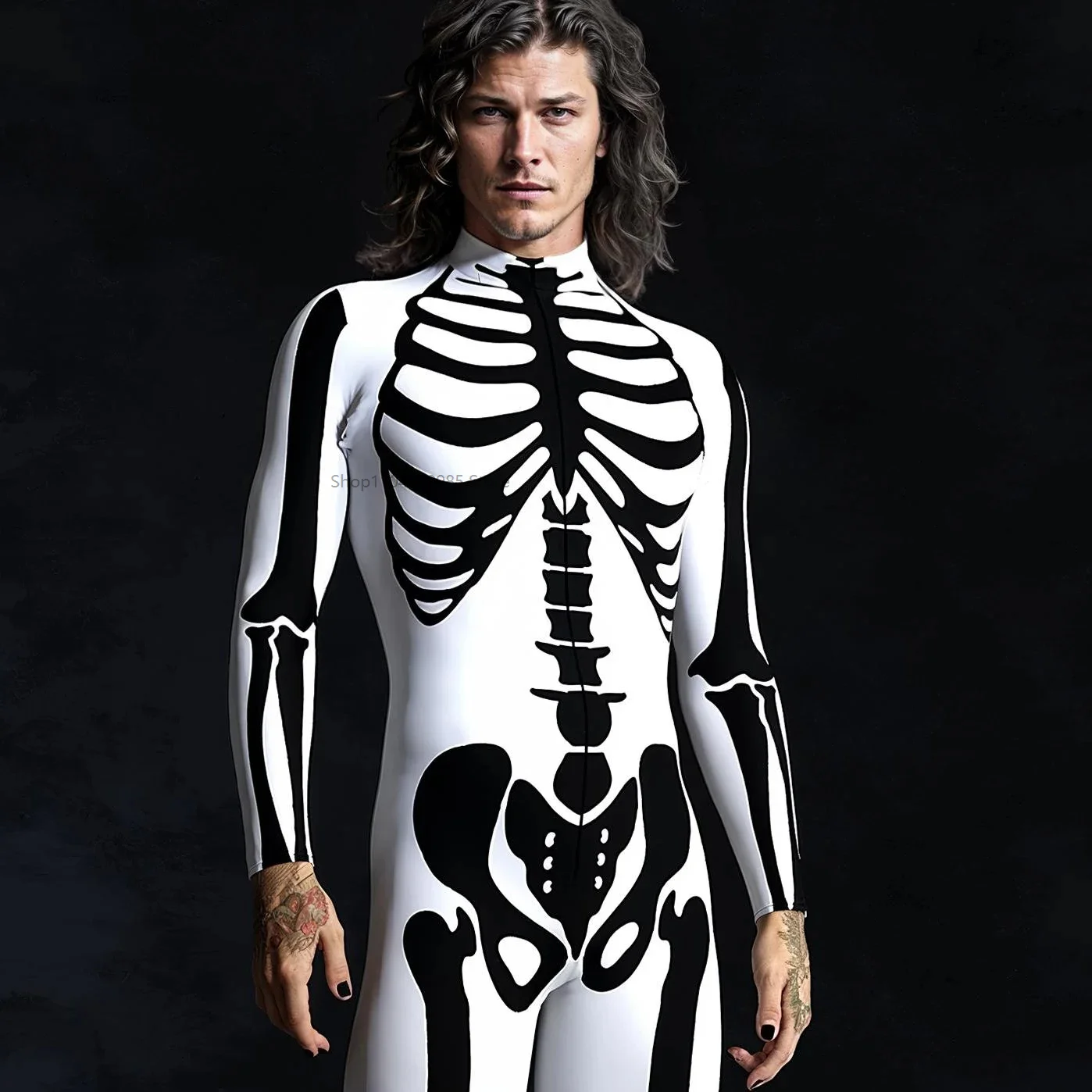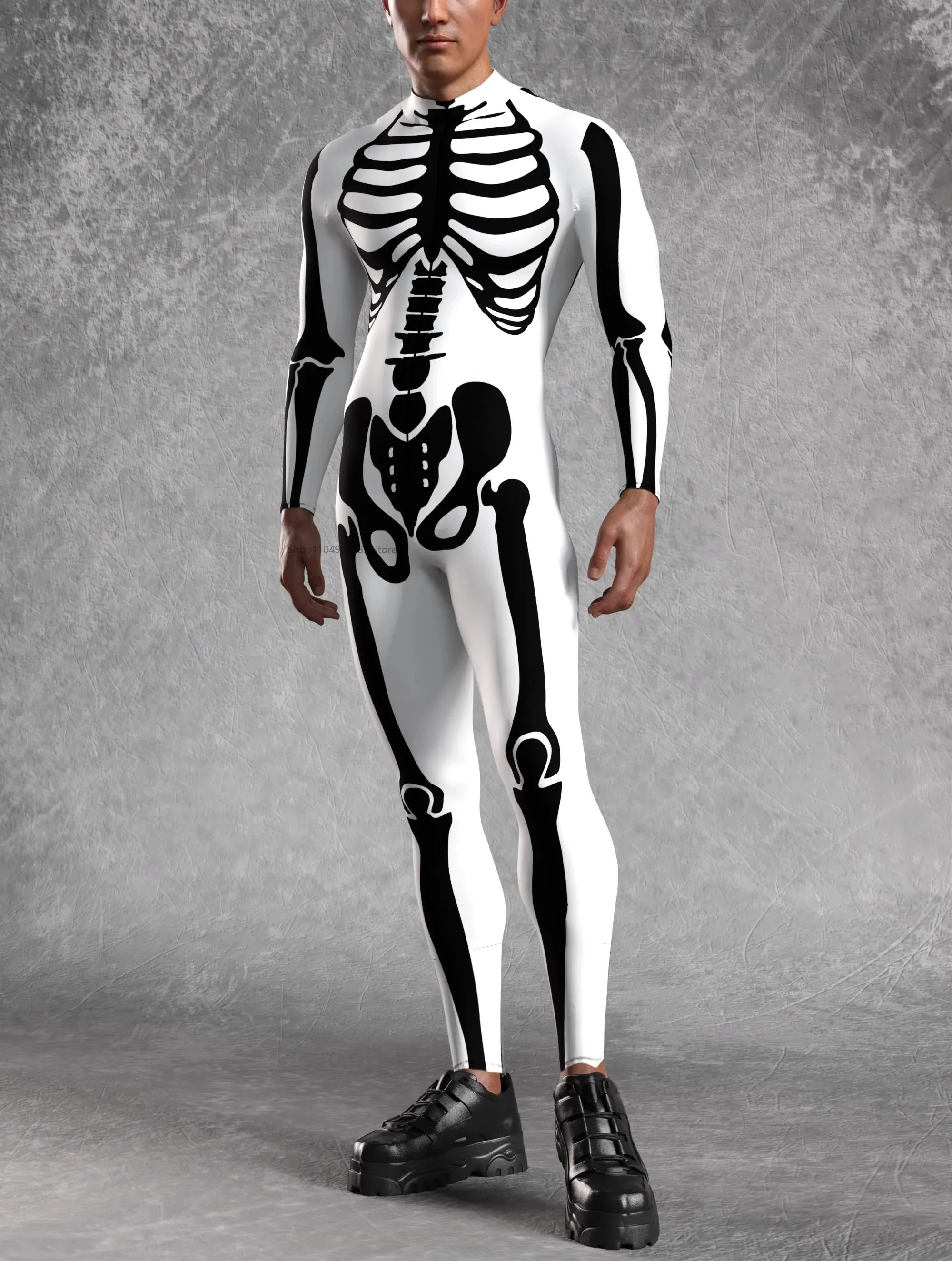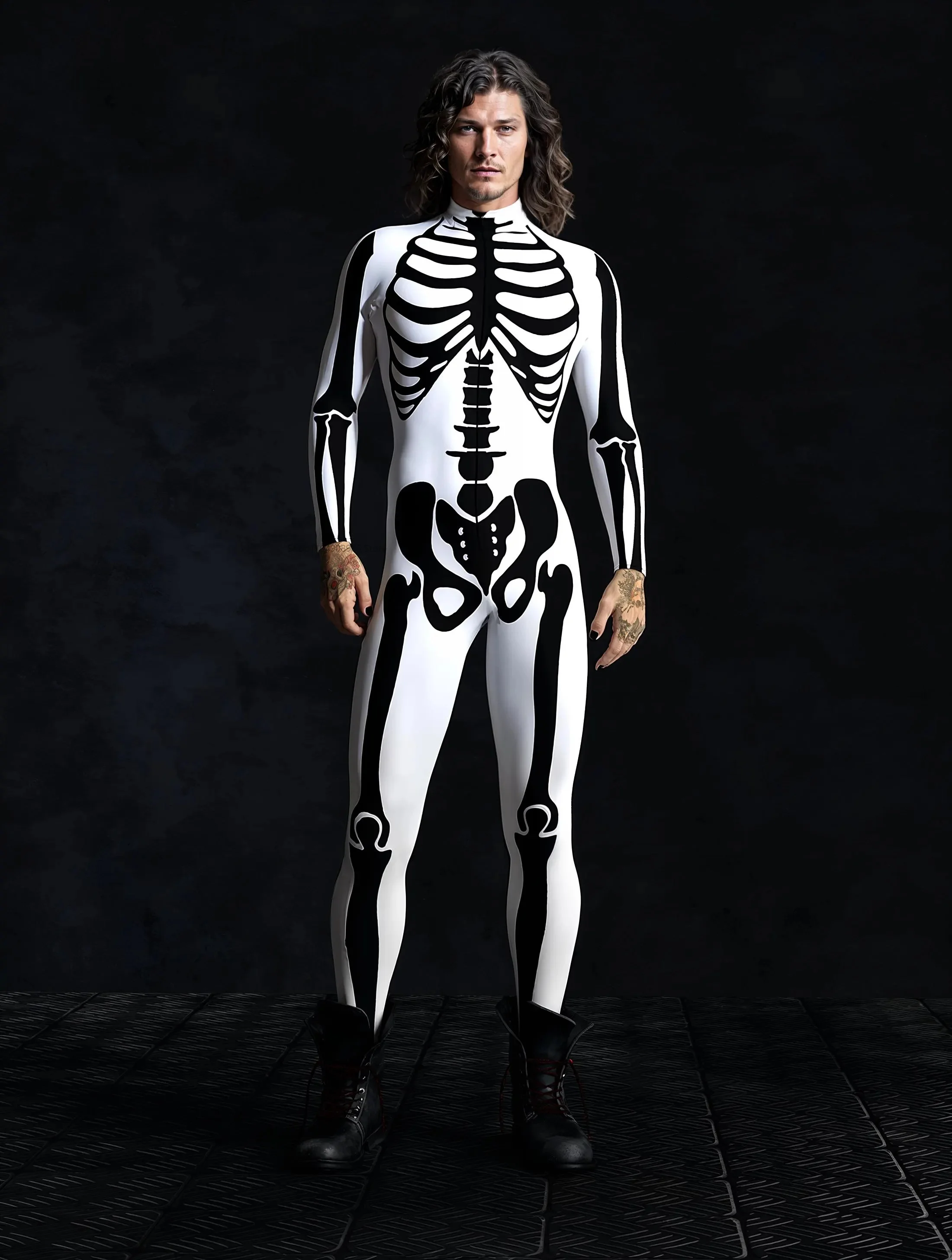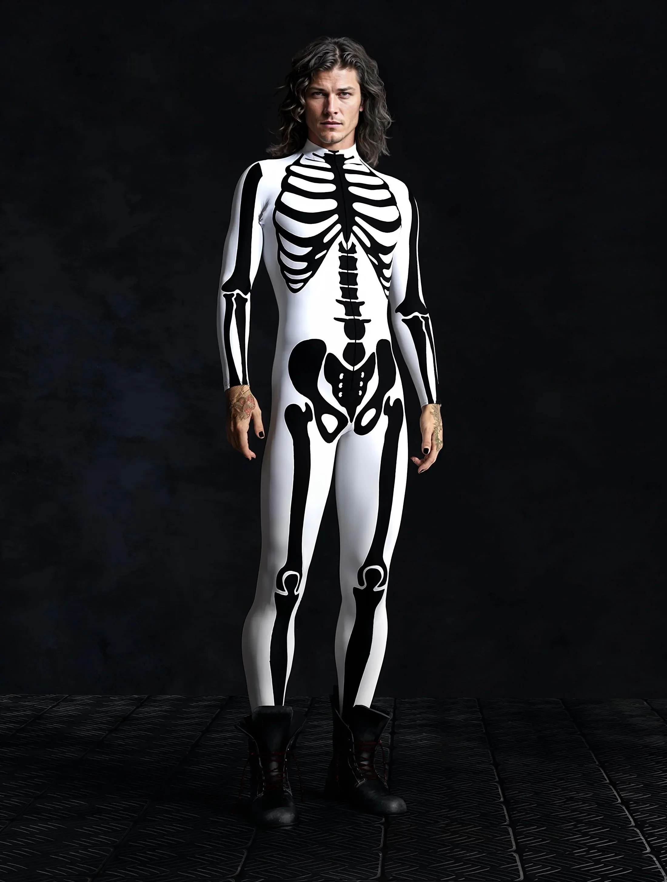 - 1 × Men’s Skeleton Steampunk Bodysuit (long-sleeve, full body, front zipper, high neck, 3D printed design)